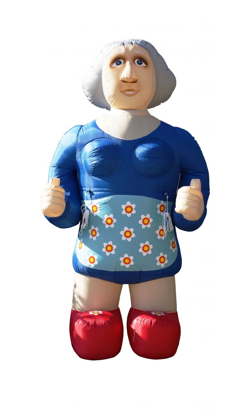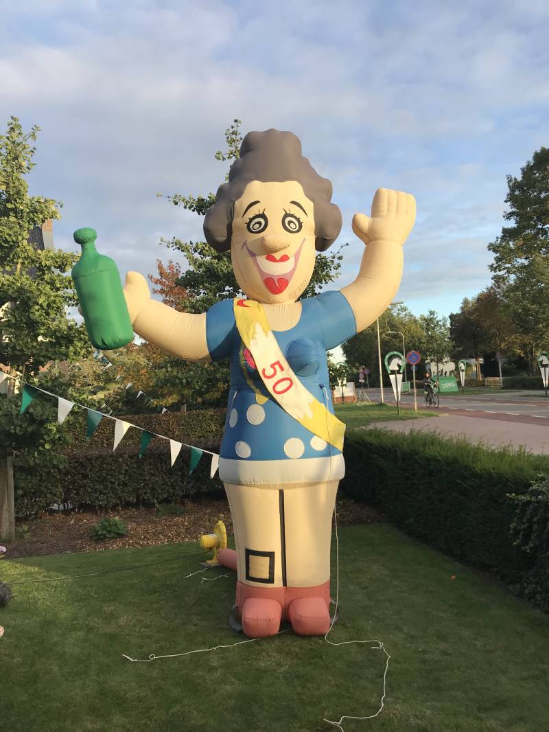 ESverhuur verhuurt opblaasbare sarah's met een hoogte van 2,8, 3,5 of 4,5 meter. Alle formaten zijn eenvoudig te vervoeren in een auto. Het pakket bestaat uit een blower, grondzeil en transportzak met opblaasfiguur en haringen.